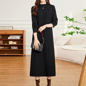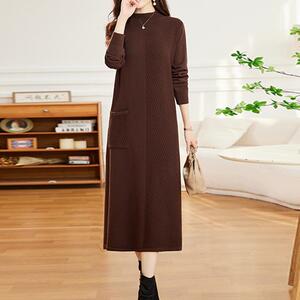 羊毛连衣裙女宽松秋冬配大衣针织半高领中长款过膝加厚毛衣打底裙