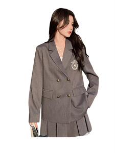 2025英伦学院风灰色小西装外套女春秋超火好看感炸街jk西服套装裙