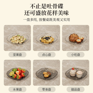 透明冰川纹吐骨碟耐摔零食水果盘轻奢高级感家用餐桌残渣盘垃圾盘