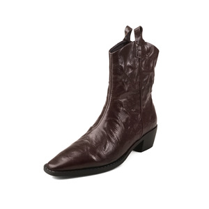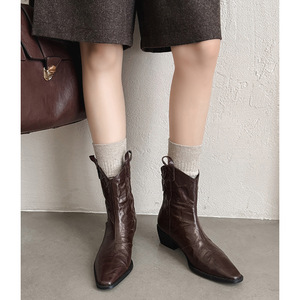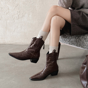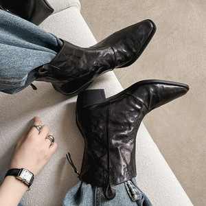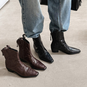 zijin家~四季可穿~!欧美方头粗跟v口后拉链马丁靴2025新款时装靴