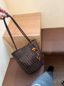 2025新款手工编织包大容量水桶包高级感时尚托特包中古单肩腋下包