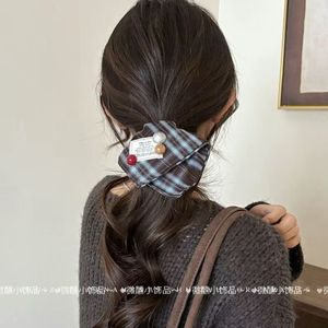 大蝴蝶结格纹方巾发圈大肠圈女韩系方形低马尾发绳头绳扎头发皮筋