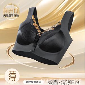 前开扣缎面蕾丝内衣小胸聚拢显大无痕收副乳防下垂无钢圈美背文胸