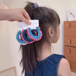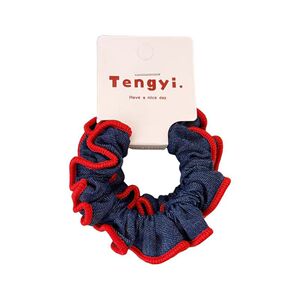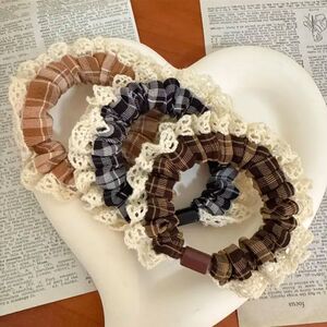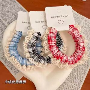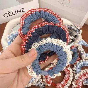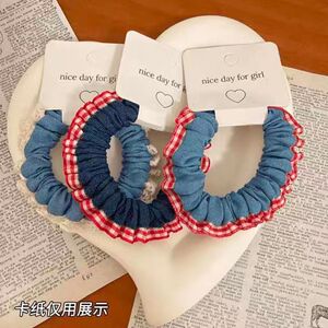 新款甜美蕾丝花边牛仔小肠发圈女童初秋上学扎马尾格子发绳头绳