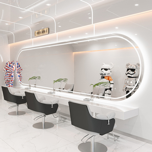 潮款理发店镜子发廊烫染剪发镜台美发店镜子横挂多工位大通镜