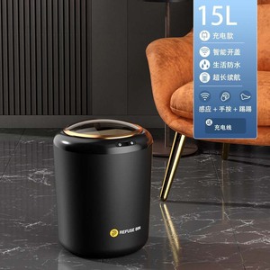 智能感应垃圾桶客厅卧室厨房厕所卫生间轻奢镀金带盖全自动