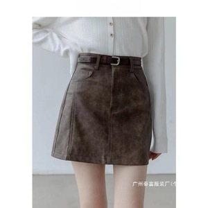 小皮裙女秋季2025新款棕色高腰裙子PU包臀秋春半身裙a字短裙欧美