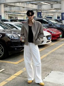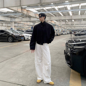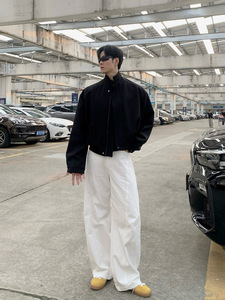 韩版立领纯色短款飞行员夹克男秋季百搭宽松高级感cleanfit外套潮