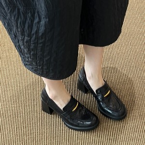 打版中~法式复古一脚蹬高跟乐福鞋女新款时尚优雅粗跟单鞋小皮鞋
