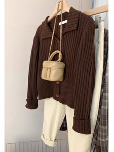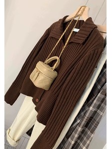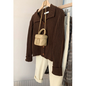 美拉德别致穿搭Polo领毛衣外套女秋冬小众设计感修身显瘦短款开衫