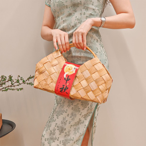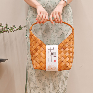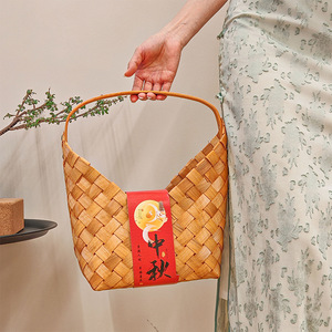 中秋节手提包装篮月饼篮子中式创意木片编织篮竹编手工伴手礼篮子