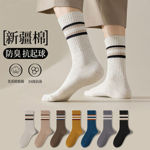 新疆棉男士中筒袜防臭抗起球棉袜条纹休闲运动袜四季通用袜子批发