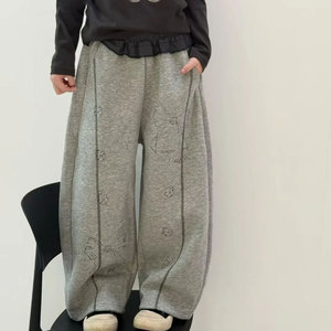 女童裤子儿童休闲裤秋装2025新款灰色韩版阔腿裤男童网红痞帅长裤