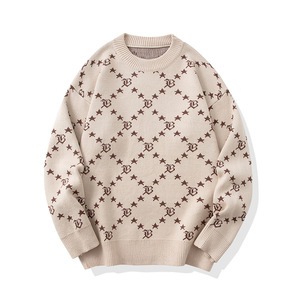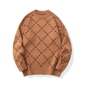 简恒圆领简约菱格毛衣男冬季针织衫毛线衣情侣毛衣潮牌宽松慵懒风