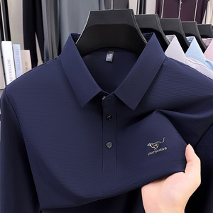长袖Polo衫男t恤秋冬新款商务翻领上衣宽松休闲高级感男士t恤代发