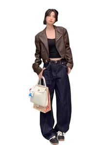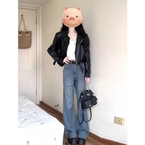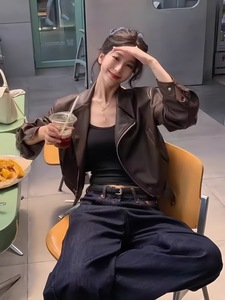 港风复古咖色pu皮衣外套女早秋季2025新款小个子短款机车夹克上衣