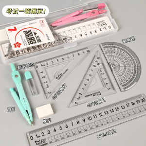 高颜值盒装套尺圆规小学生绘图测量文具套装直尺三角尺七件套批发