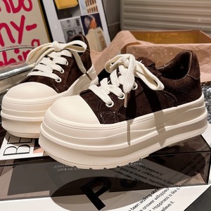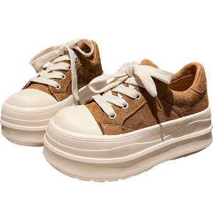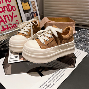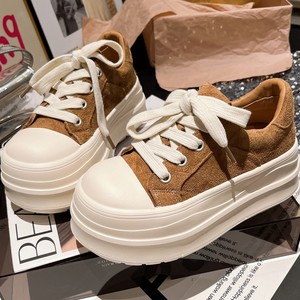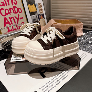 2025新款磨砂真皮大头面包鞋厚底松糕小个子6cm休闲板鞋运动鞋女