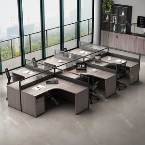 职员办公桌椅组合简约现代双四人工位员工桌六人位屏风办公室卡座