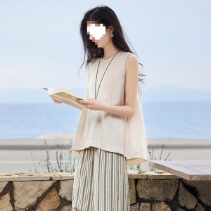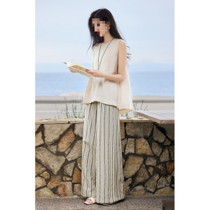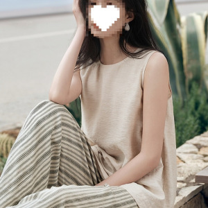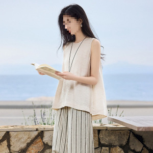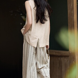 2025亚麻袖上衣时尚休闲显瘦减龄百搭套装女夏季清凉松弛两件套