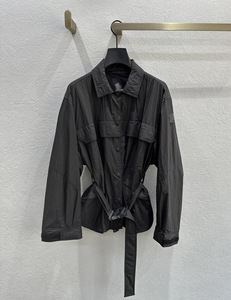 腰间插扣腰带翻领风衣式外套