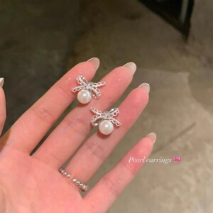 法式千金蕾丝蝴蝶结珍珠耳钉女轻奢高级感气质耳环独特设计耳饰