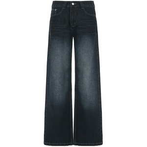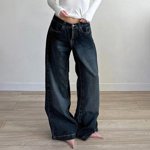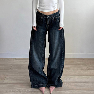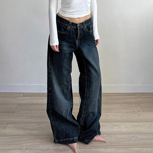 2025新款美式复古洗水宽松阔腿牛仔裤女直筒显瘦低腰休闲辣妹长裤