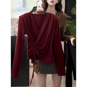 酒红色【韩系氛围感/绝美/温柔风/巨显瘦遮肉/收腰/小个子/长袖上衣女春秋单穿/休闲/松弛感/chi