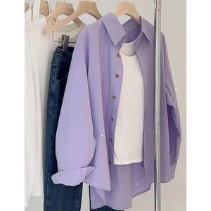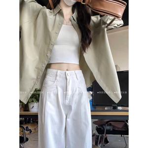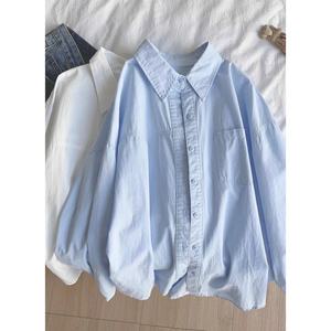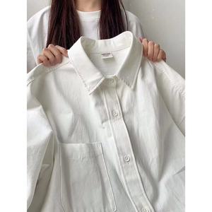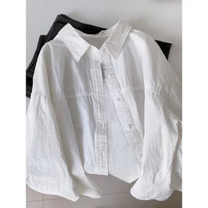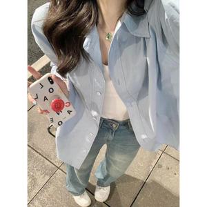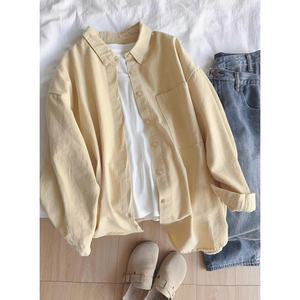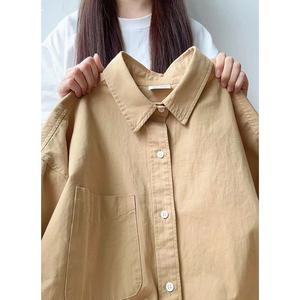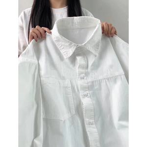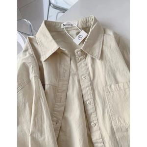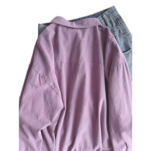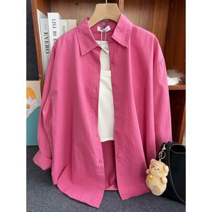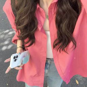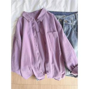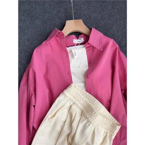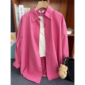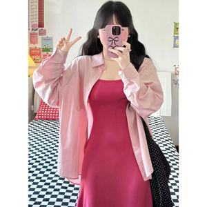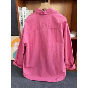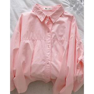 纯棉叠穿玫粉色衬衫女春秋款内搭打底宽松百搭显瘦长袖衬衣潮