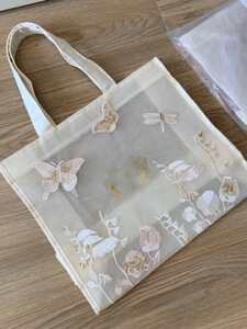 2025美妆赠礼 迪家蕾丝网纱刺绣蝴蝶 托特包大容量单肩手提购物袋