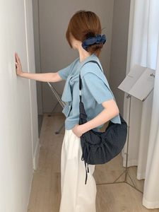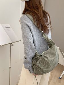 韩系ins慵懒风牛角包大容量帆布包褶皱格子尼龙包通勤单肩斜挎包