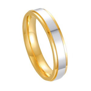 跨境欧美爆款间金双色钛钢情侣戒指环小众不锈钢光面戒指结婚饰品