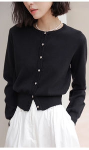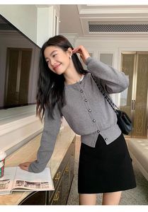 秋冬圆领长袖宽松开衫毛衣女装上衣新款简约百搭针织小香风外套