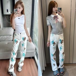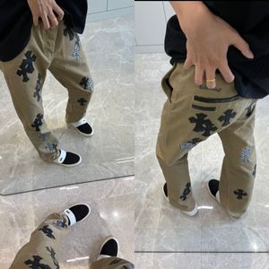 美式克罗CH高街轻奢牛仔裤白色潮牌十字架宽松男女同款直筒长裤