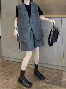 漂亮女装高端洋气减龄套装微胖女生显瘦通勤西装马甲短裤两件套