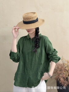2025秋季新款立领长袖衬衫 复古刺绣棉纱宽松版休闲衬衣女