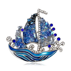 新款一帆风顺帆船胸针轻奢高级感水晶胸花珐琅彩衣饰配饰别针