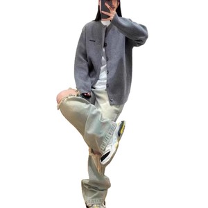 纯色刺绣毛衣开衫秋冬新款情侣宽松休闲百搭针织开衫外套男装