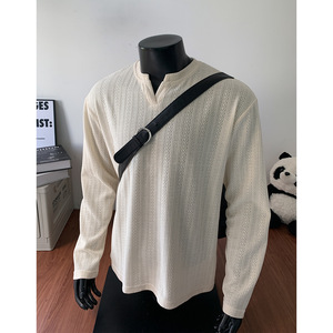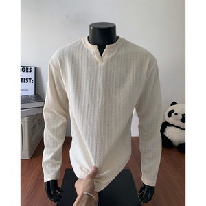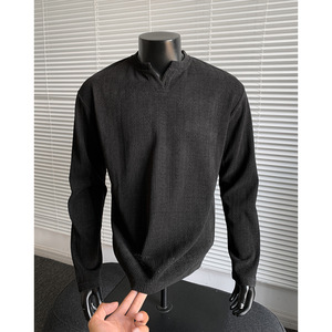 2025男秋季新款男士小V领套头卫衣cleanfit长袖打底衫高级感外套
