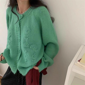 韩系糖果色立体花朵针织开衫女2025秋季新款设计感温柔风软糯毛衣