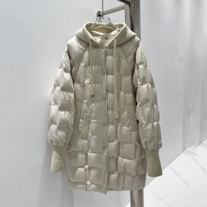 韩版时尚宽松休闲可拆卸针织帽羽绒服女新款中长款保暖冬季厚外套