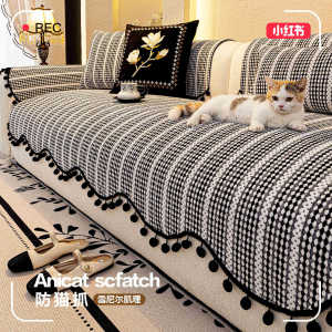 防猫抓沙发垫四季通用2025新款雪尼尔高级感固定防滑坐垫直排盖布