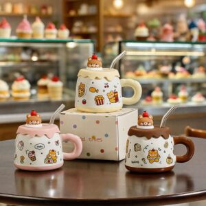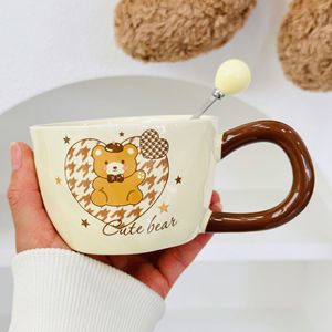 生日礼物可爱卡通熊陶瓷马克杯带盖吸管杯女生家用早餐咖啡牛奶杯