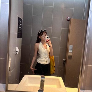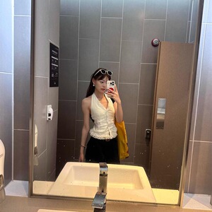 【原版布料】高级感蕾丝花边白色V领挂脖女夏小众设计感收腰短上