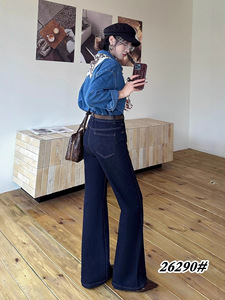 深蓝色高腰牛仔裤2025新款复古显瘦提臀弹力喇叭裤女时尚春秋长裤
