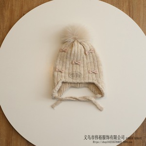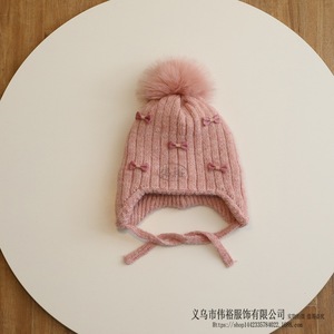 2025冬季新款女中大儿童双层保暖护耳满蝴蝶结大毛球毛线帽子