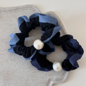 撞色蓝牛仔发绳面膜发圈时尚珍珠马尾扎头绳橡皮筋高弹力皮套