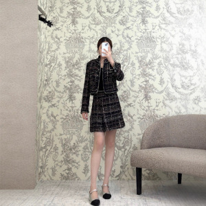 2025秋季新款南油cha气质名媛小香风圆领单排扣口袋外套+半裙套装