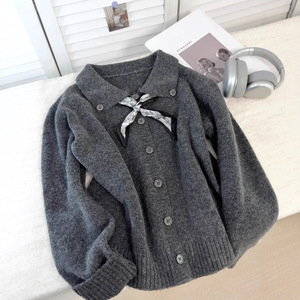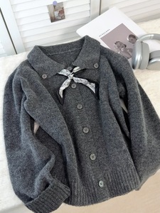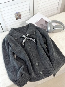 原创设计!高品质时尚韩版复古宽松针织开衫女百搭配丝巾!