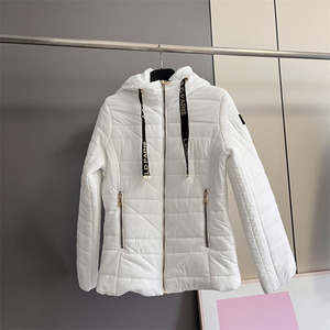 白色织带字母连帽棉服女